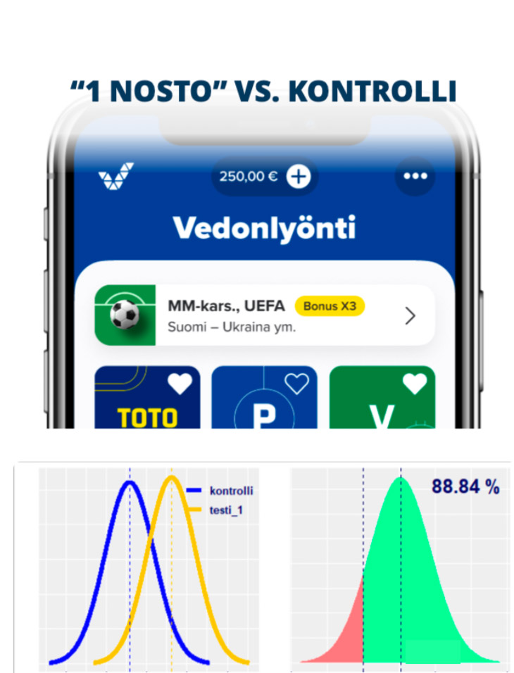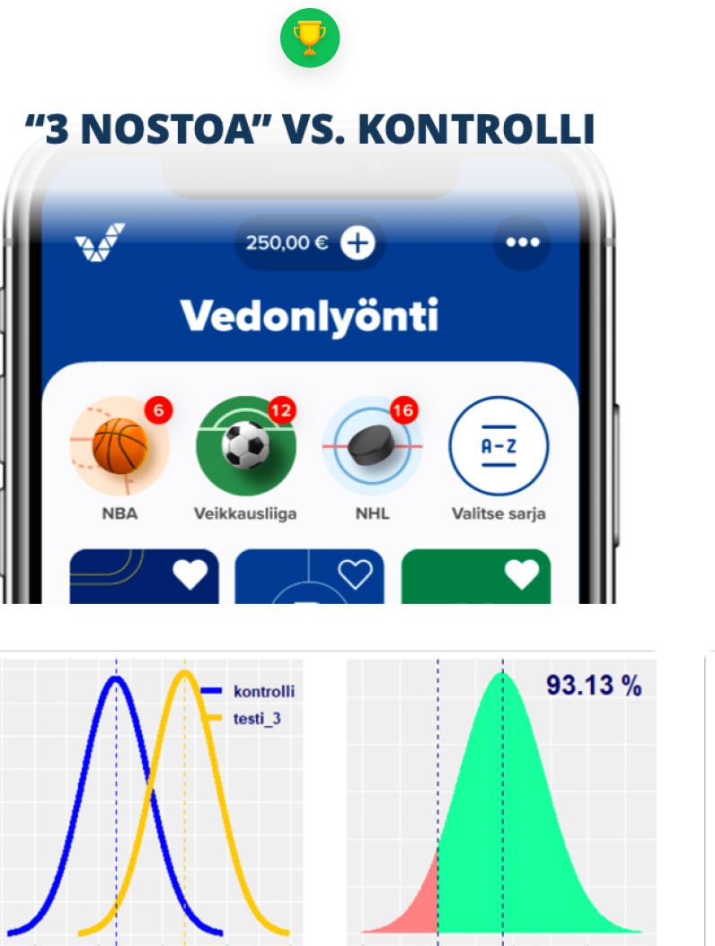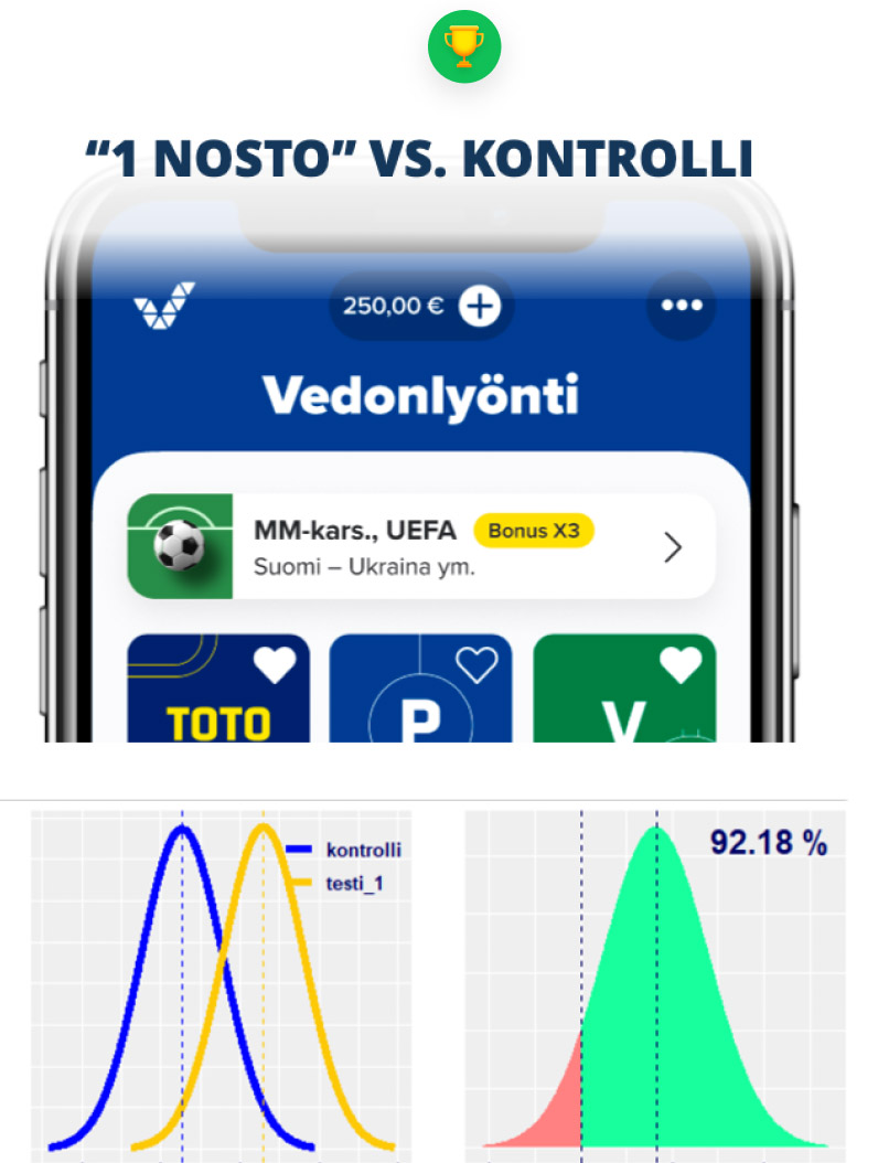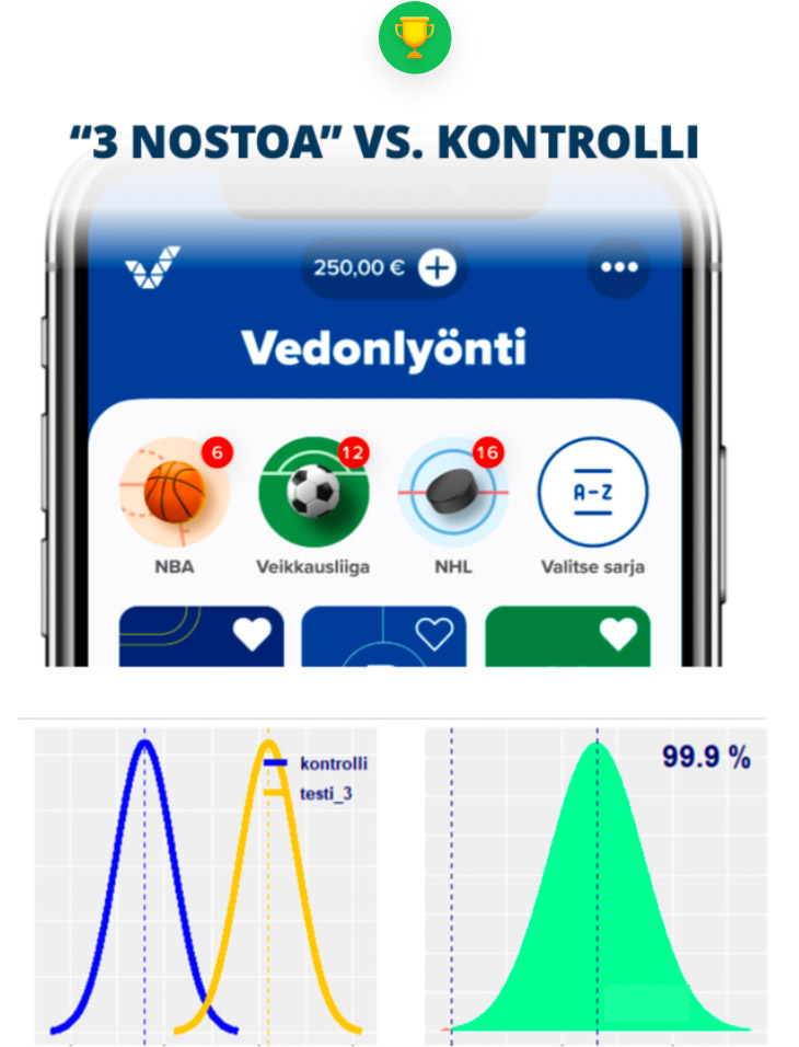 In the ABC test, both new versions raised the average number of betting products per customer by 2%.