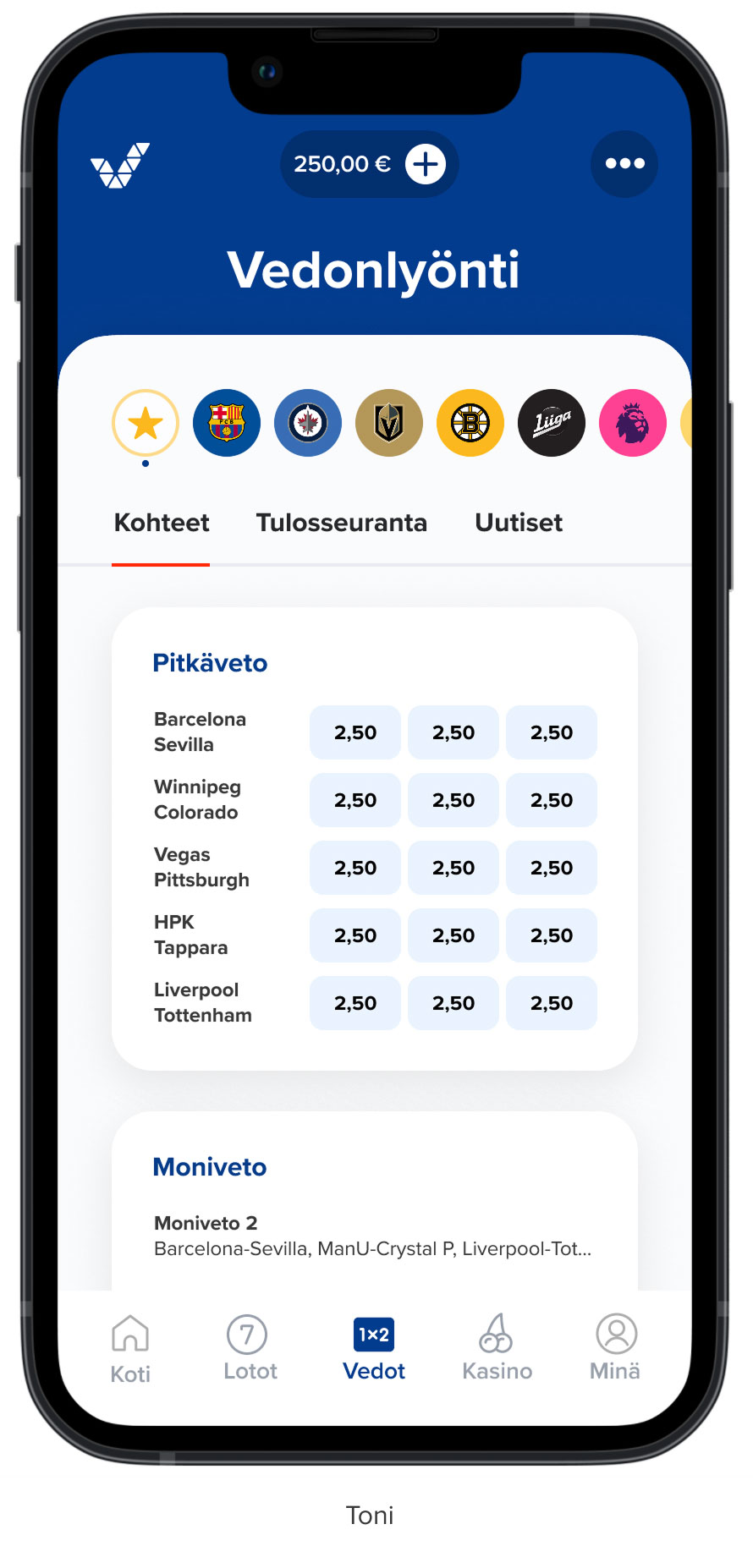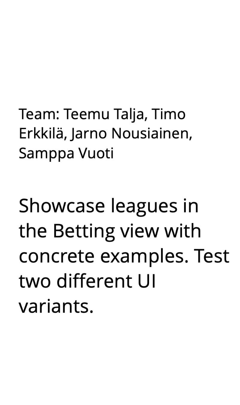 The first layout, including league promos, is surprisingly close to our final Betting view. Still, we needed some detours because the brainstorming outputs lacked interaction designs and technical building blocks.