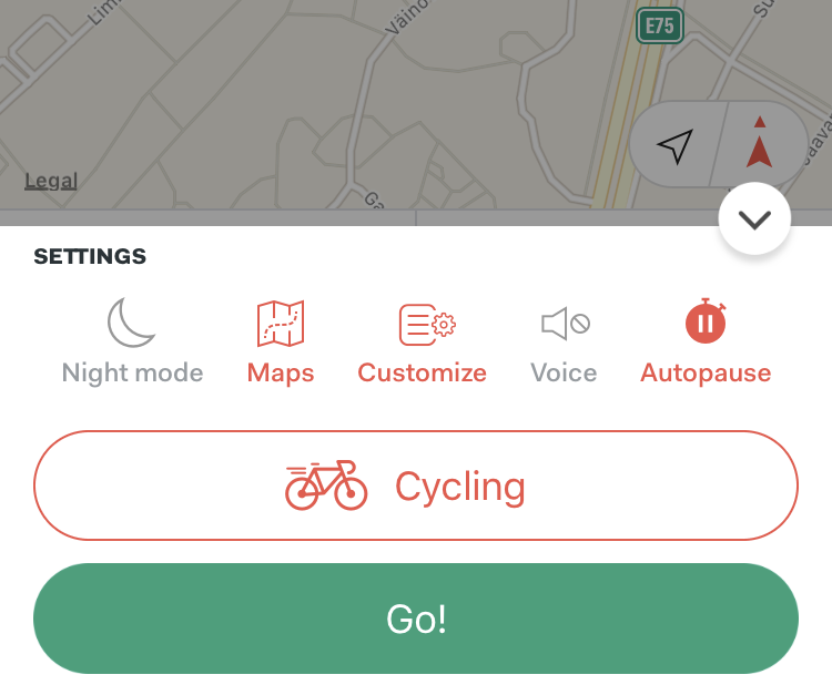 Sports Trackerissa ja Stravassa automaattinen keskeytys on sijoitettu harjoituksen aloittamisen yhteyteen. Erityisesti Sports Trackerissa se on hyvin näkyvillä (kuva yllä).